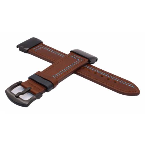 eses Kožený remienok pre Garmin - Hnedý s modrým prešívaním, QuickFit 26 mm