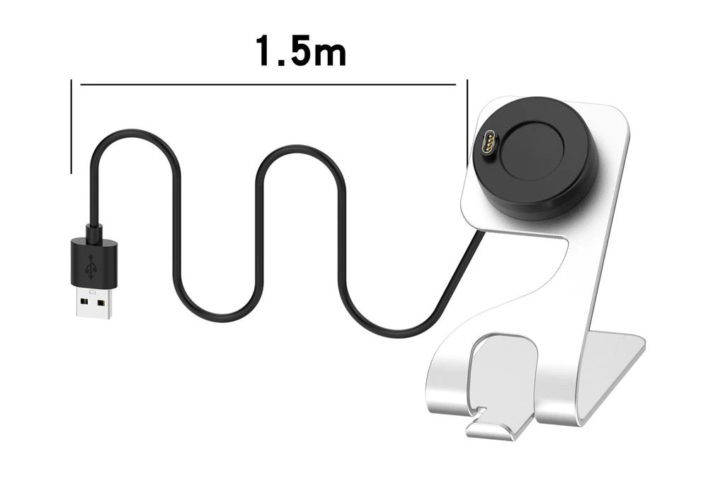 Hliníkový nabíjací stojan pre chytré hodinky Garmin v striebornej farbe.