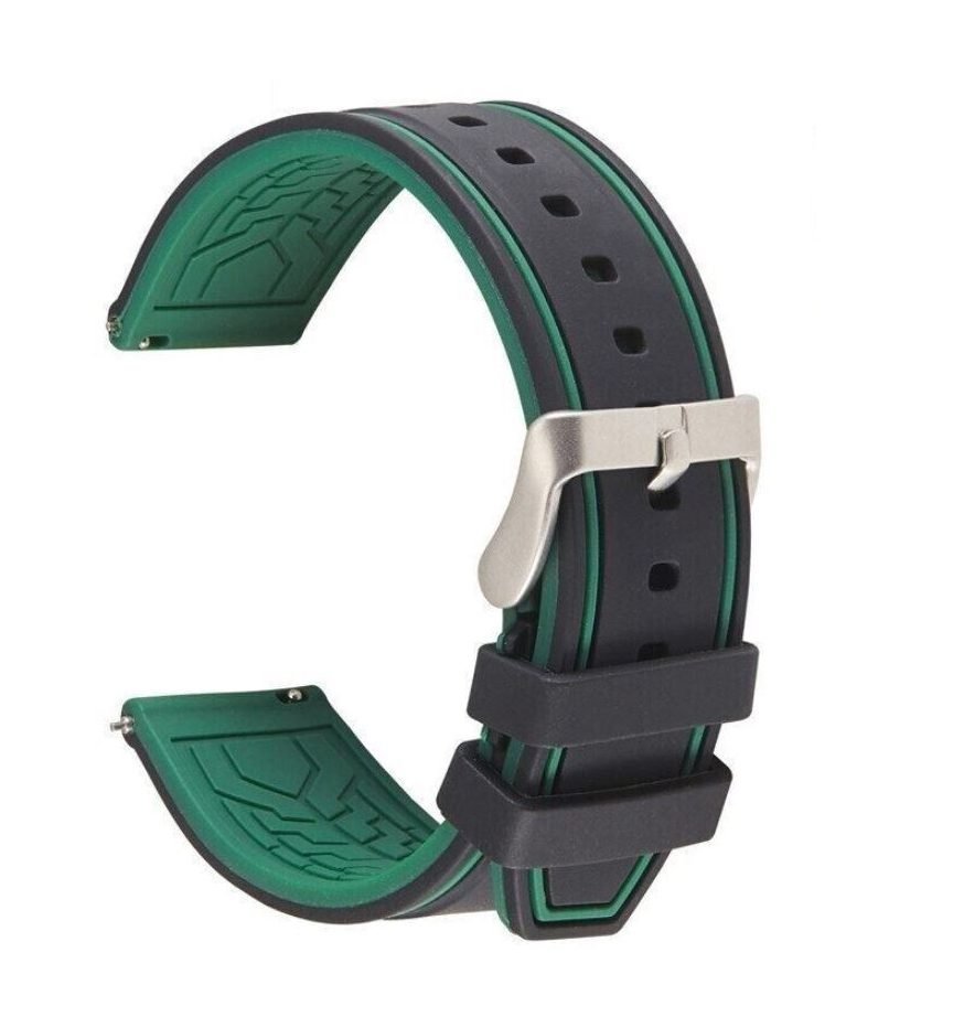 eses Silikónový remienok dvojfarebný prúžok - Zeleno čierny, 24 mm