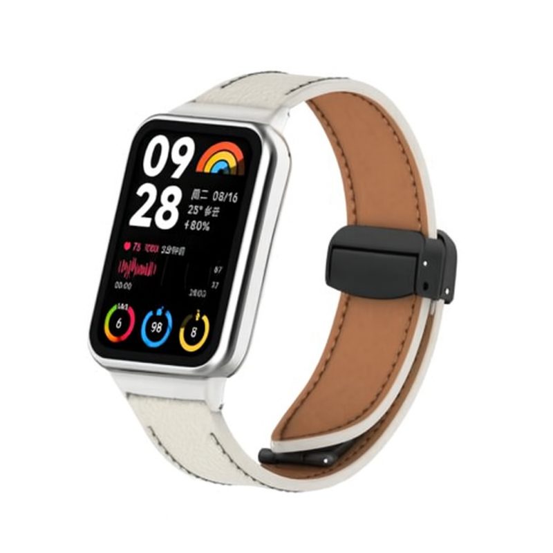 eses Kožený remienok s magnetickou sponou pre Xiaomi Redmi Watch 4, Smart Band 8 Pro a 9 Pro - Béžový