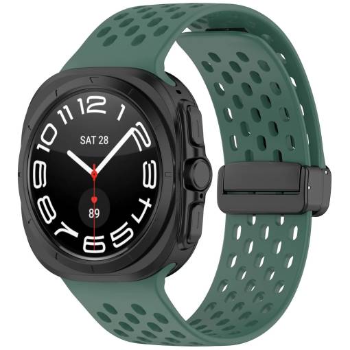 eses Silikónový dierkovaný remienok s magnetickou prackou pre Samsung Galaxy Watch Ultra 47 mm - Zelený
