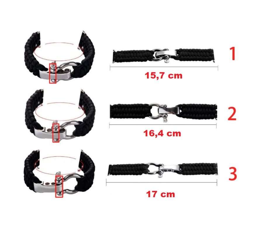 Remienok má špecifické uzatváranie pomocou skrutkovacieho mechanizmu. Ten ponúka 3 polohy, tzn. 3 voliteľné dĺžky remienka: