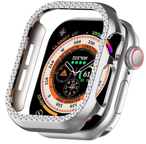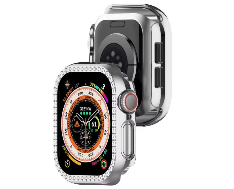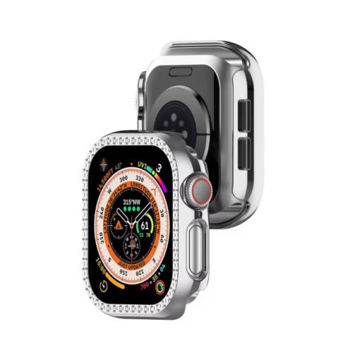 Ochranný rámček s kamienkami pre Apple Watch 10, 46 mm - Strieborný