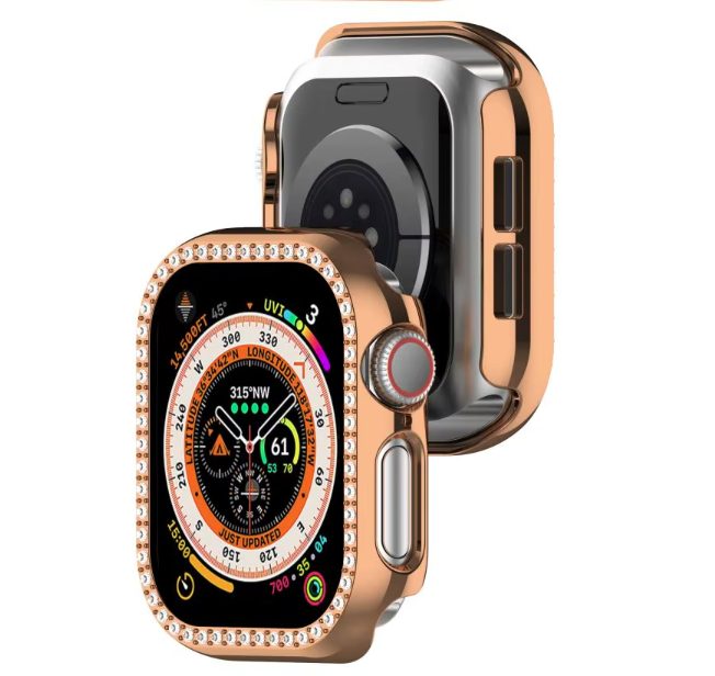 Ochranný rámček s kamienkami pre Apple Watch 10, 46 mm - čierny