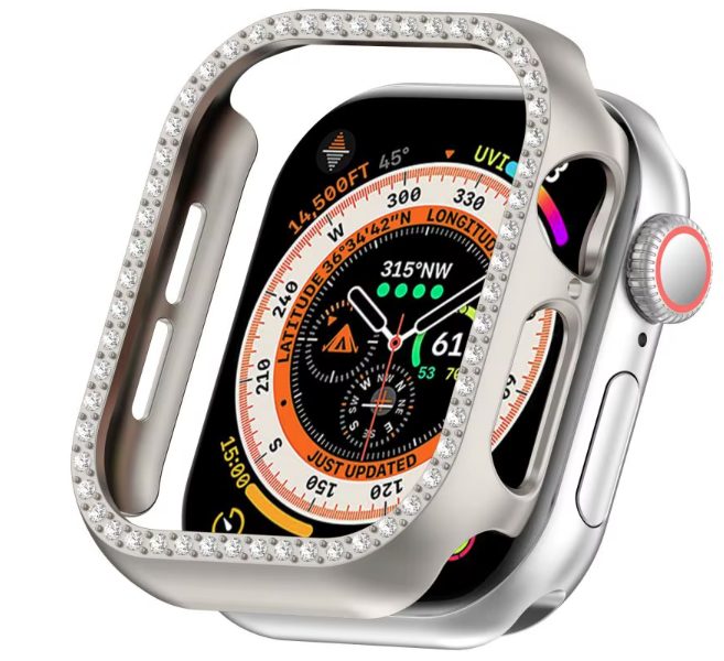 Ochranný rámček s kamienkami pre Apple Watch 10, 46 mm - Strieborný, matný