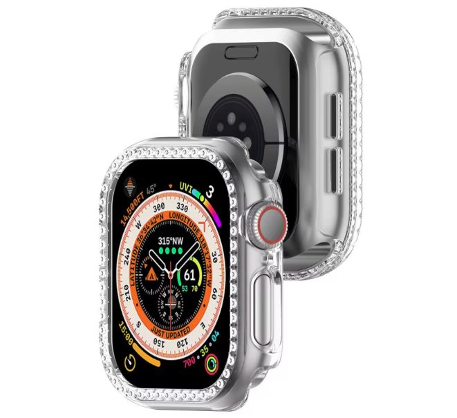 Ochranný rámeček s kamínky pro Apple Watch 10, 42 mm - Transparentní