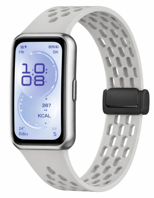 eses Silikónový dierkovaný remienok s magnetickou prackou pre Huawei Band 11 a Huawei Band 11 Pro - Svetlo šedý
