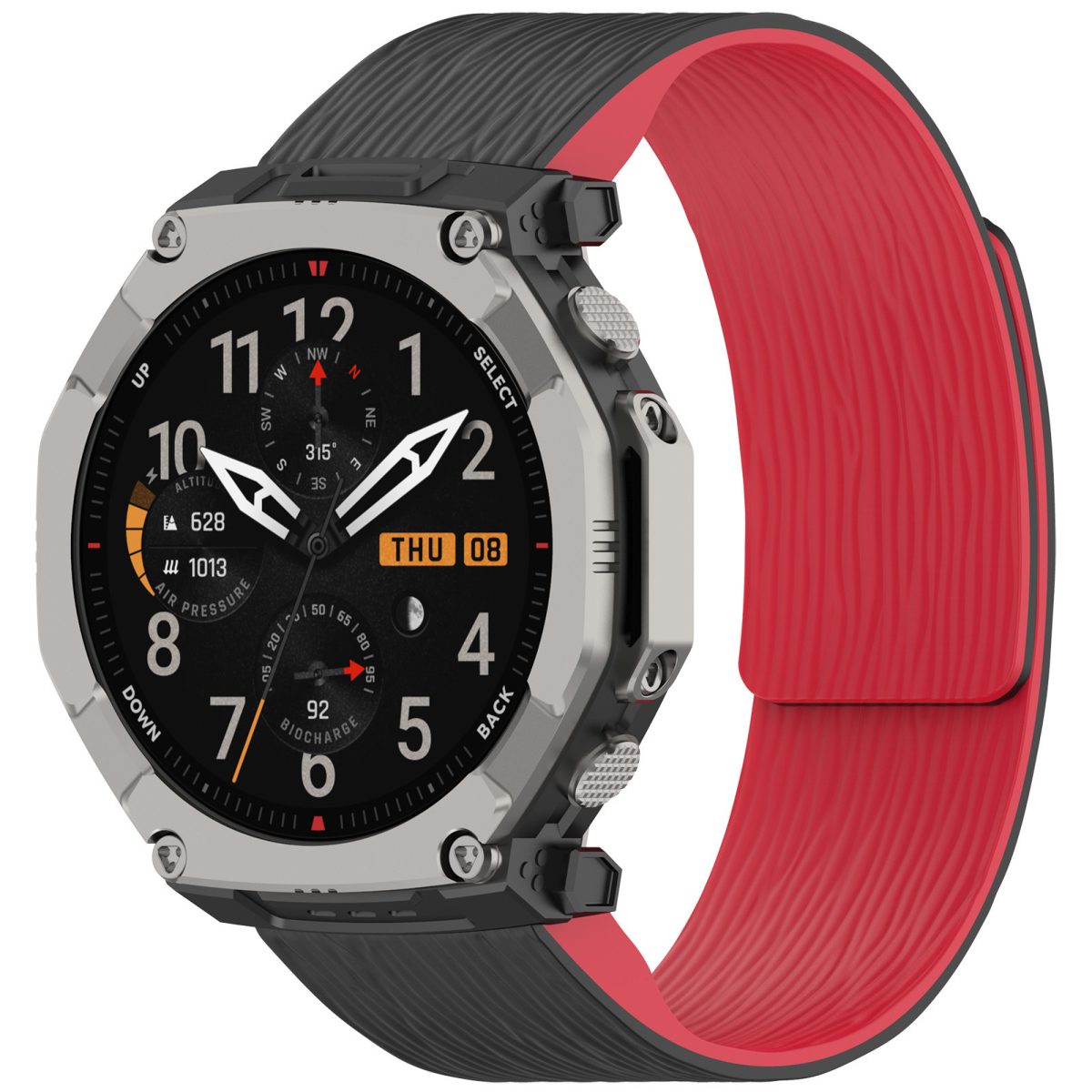 eses Silikónový magnetický remienok pre Amazfit T-Rex Ultra 2 - čierno červený