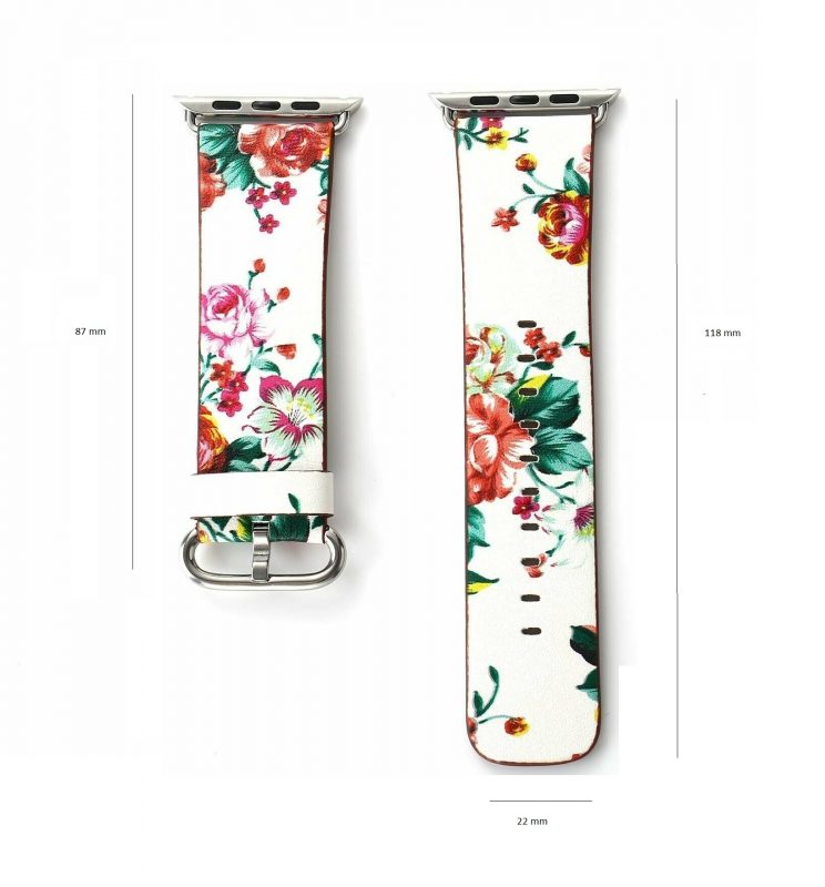 eses Kožený kvetinový remienok pre Apple Watch - Bielo červený 42mm, 44mm, 45mm, 49mm