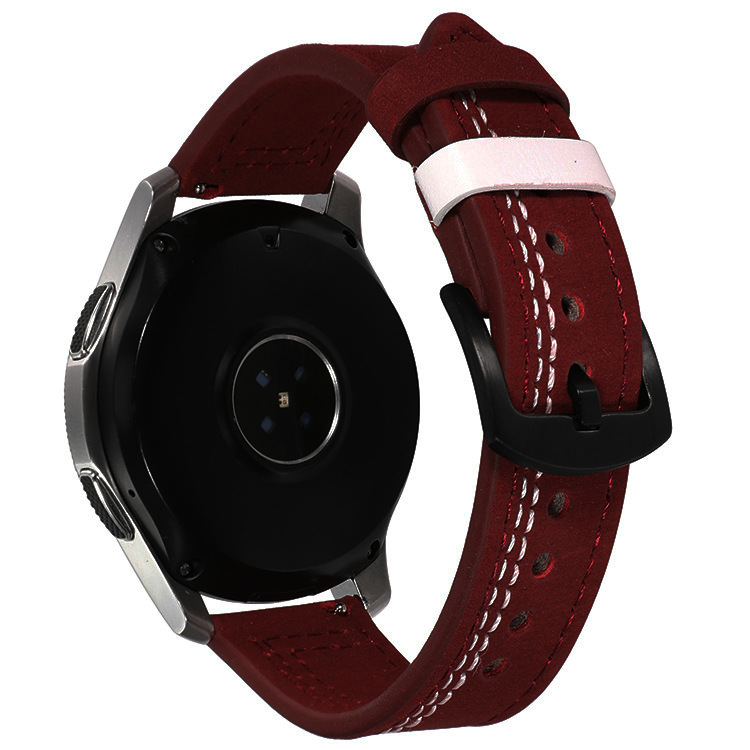 eses Kožený remienok - Vínový s bielym prešívaním, 20 mm