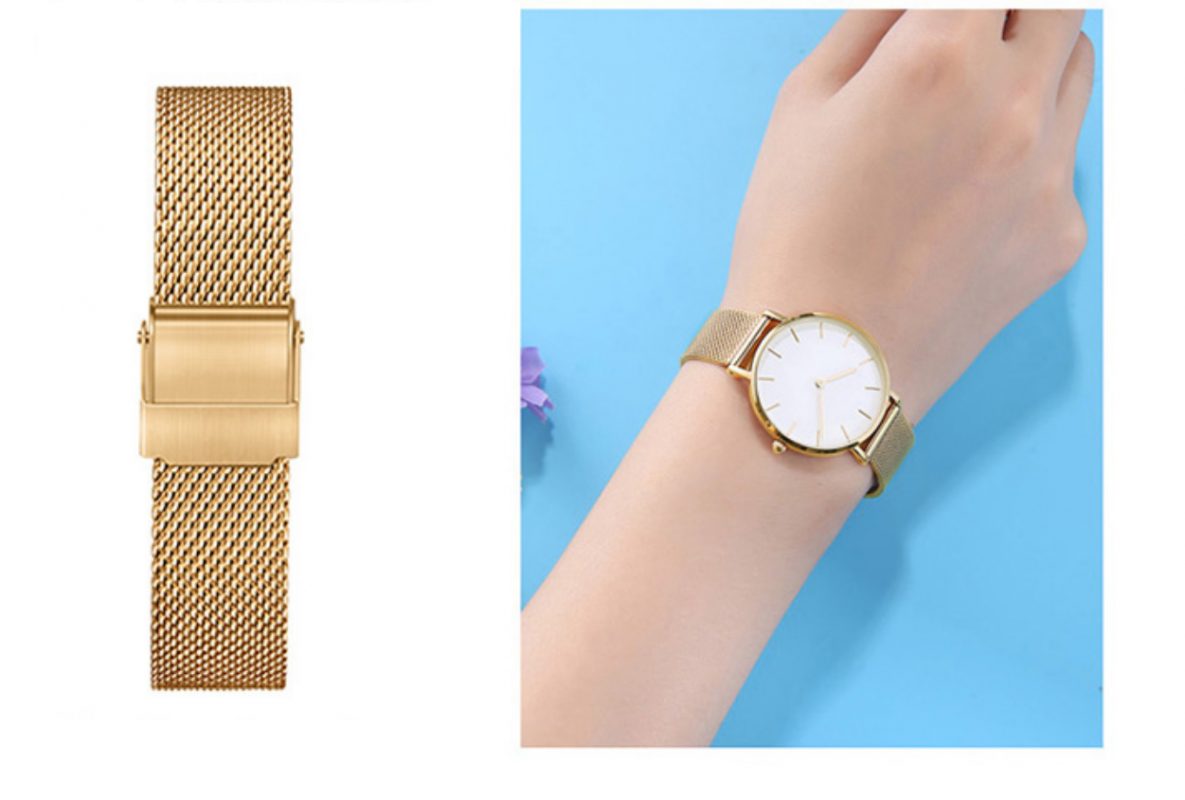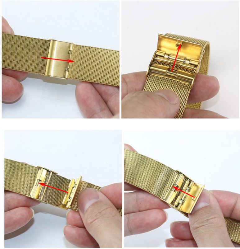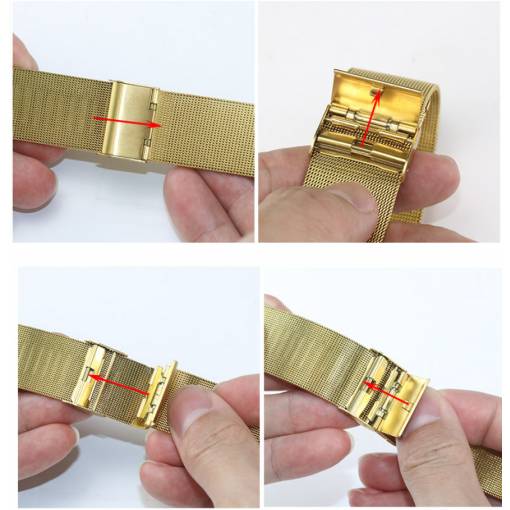 Elegantný remienok je vyrobený z kvalitnej nerezovej ocele, remienok je opatrený sponou pre pohodlné upínanie, a jeho dĺžka je ľahko nastaviteľná pomocou posunu spony.