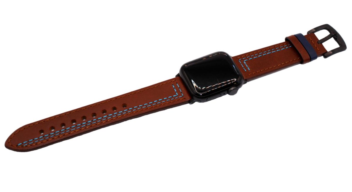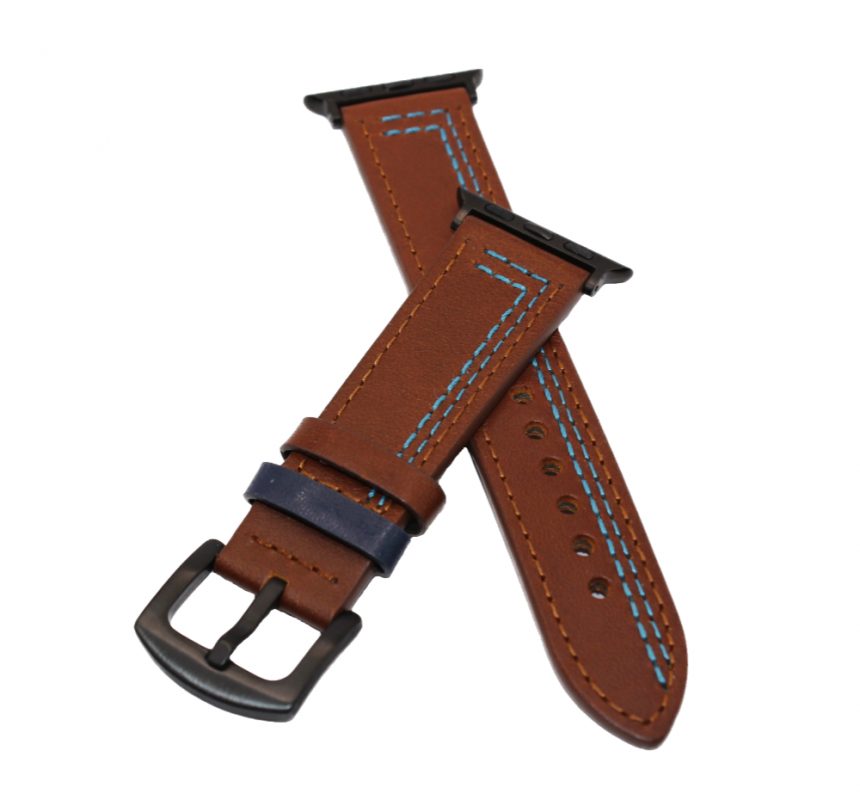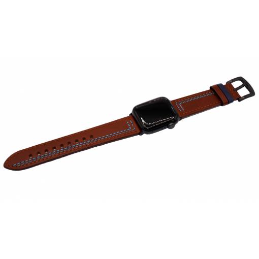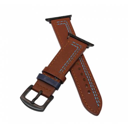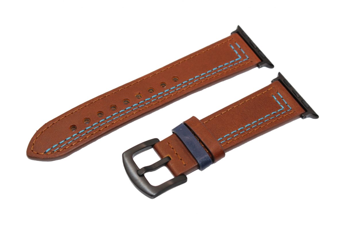 eses Kožený remienok pre Apple Watch - Hnedý s modrým vzorom 42mm, 44mm, 45mm, 49mm